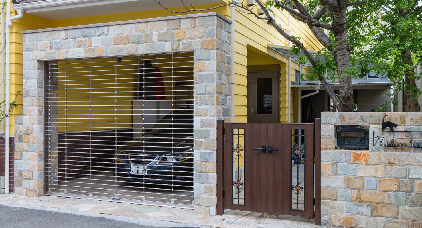 ガレージ入口と門まわりも改装し、人も動物も心地よく過ごせる動物病院併用住宅に仕上げました。