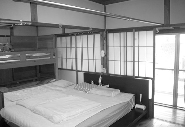 プレイルームの上部のロフトは小屋組現し、塗装仕上。子どもたちの秘密基地となっています。1階のご主人のお父様のお部屋の壁は、塗装した板を重ねて張り、空間のアクセントになっています。